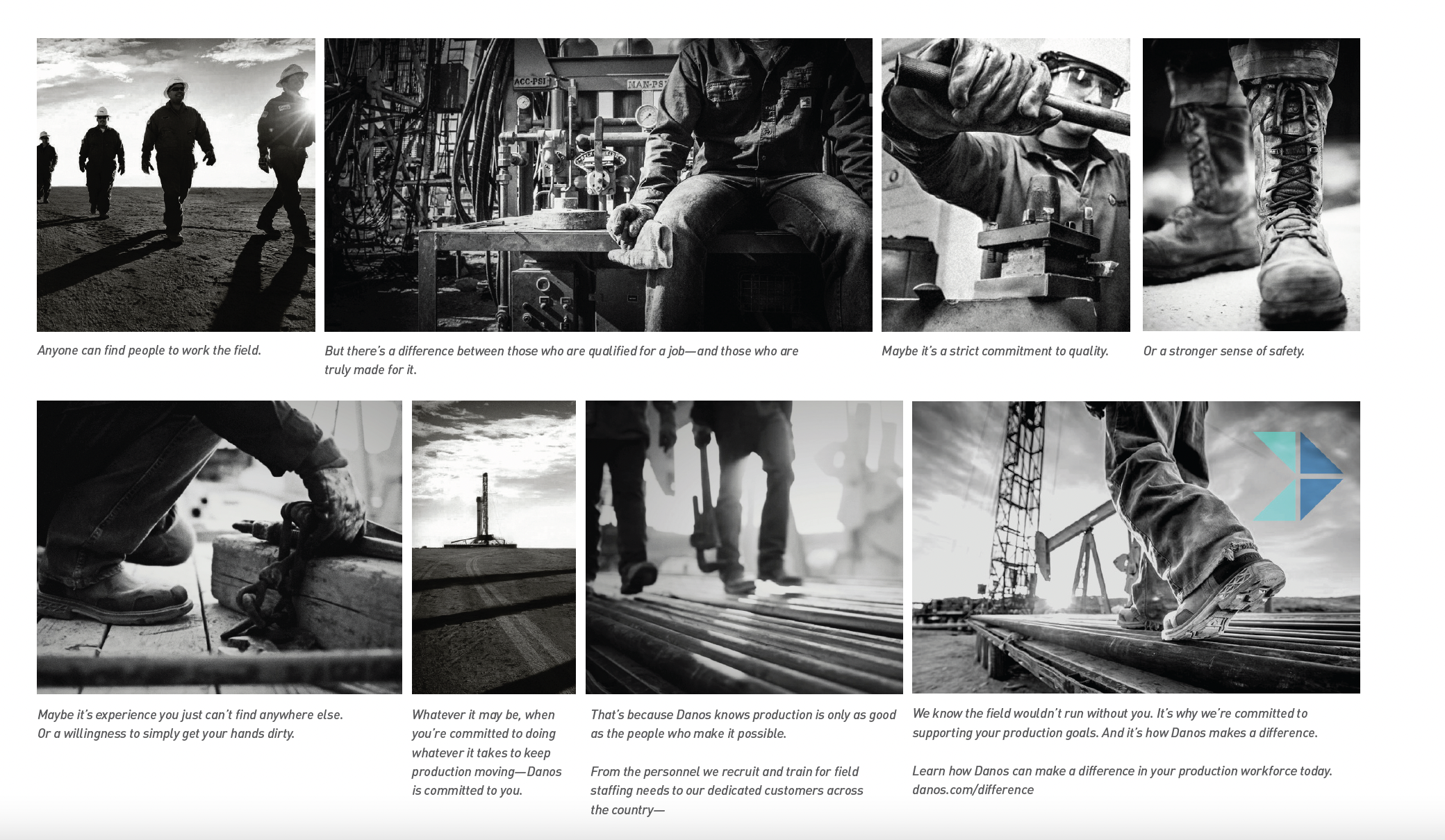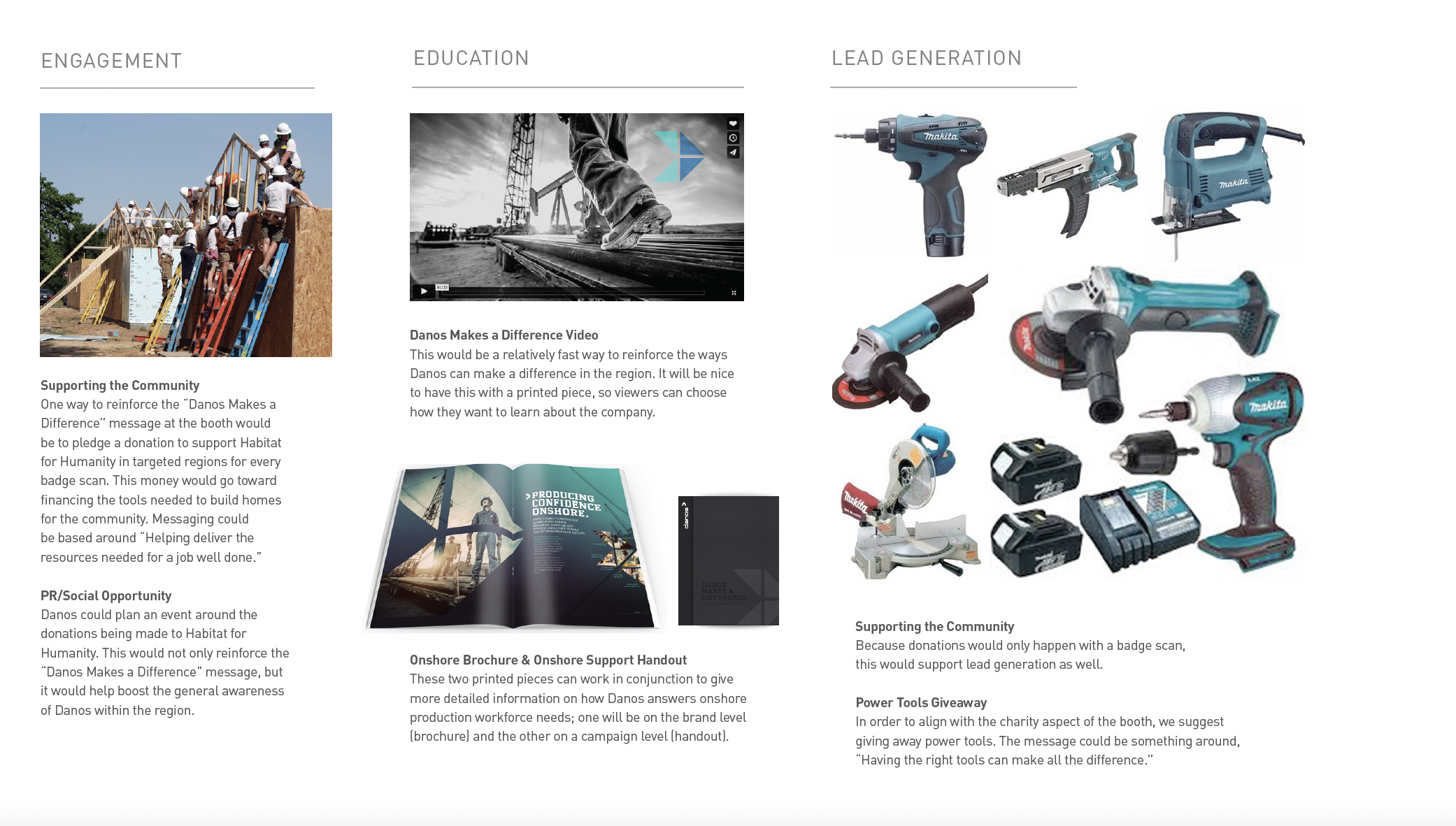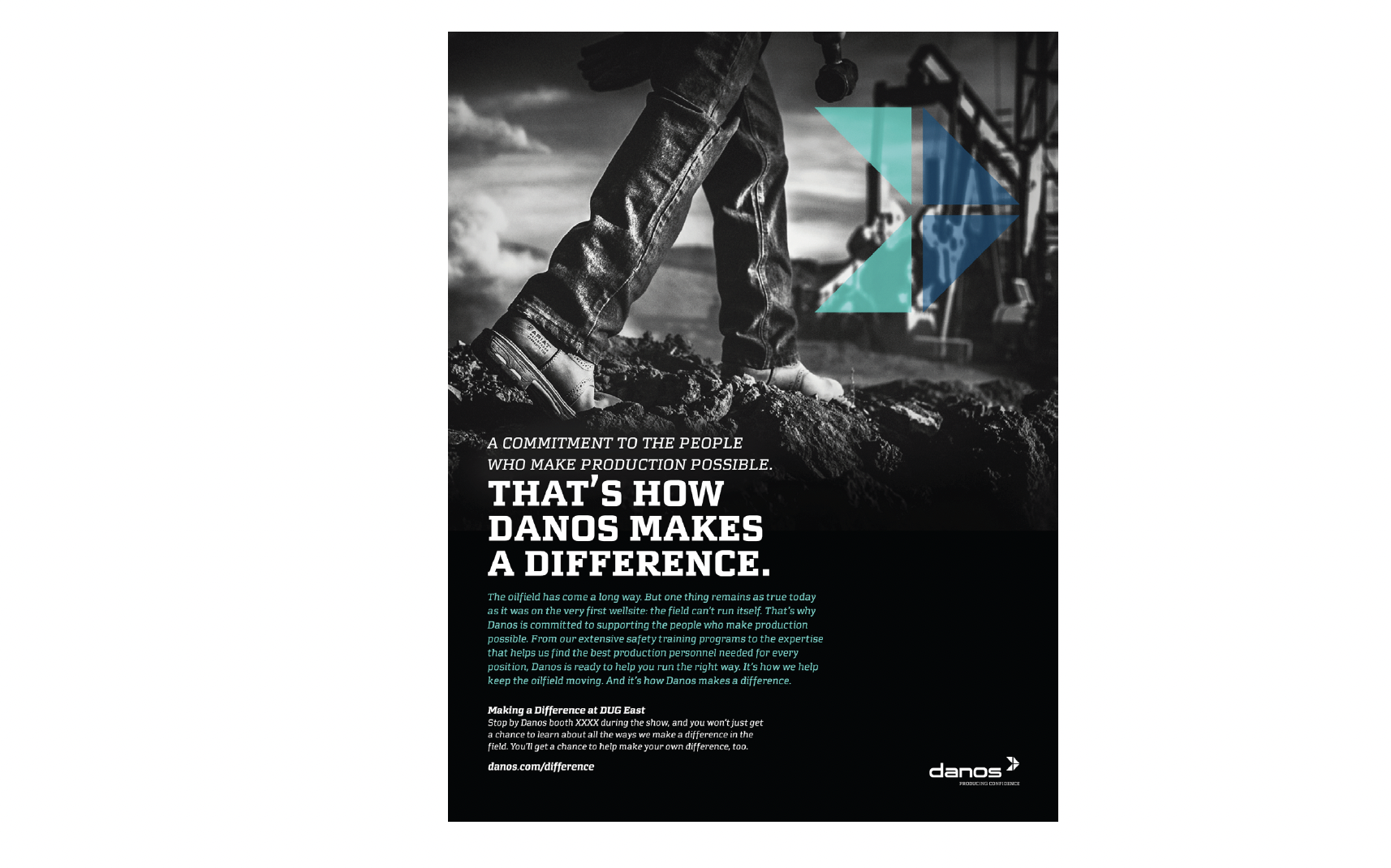 Danos makes a difference in the oilfield by being all about their people. For this tradeshow campaign deck, we proposed a way to show how they can make a difference from advertising to tradeshow giveaways. Danos selected this concept direction with a paired down execution of the idea.