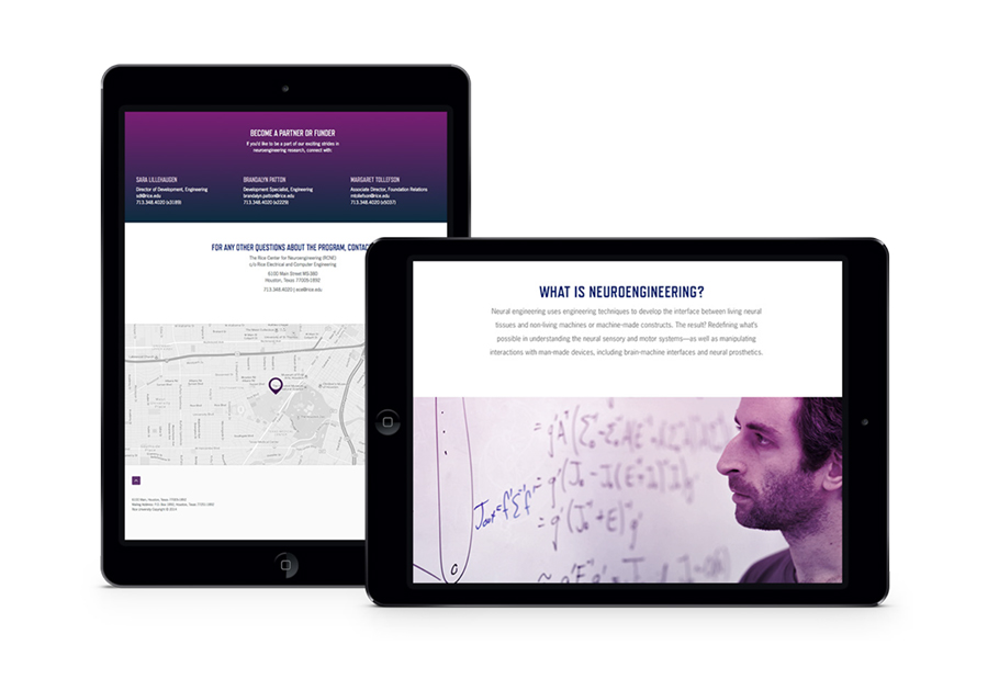 Neural engineering is an emerging discipline that exploits engineering techniques to understand, repair, manipulate or treat the diseases of human neural systems and networks. The Neuroengineering group at Rice University wanted a website would help increase visibility of the their research and gain potential funders. To achieve this goal, I oversaw our initial research phase by leading client interviews, and then established the look and feel for the brand collaborating with the Unleaded web developers to code the site.