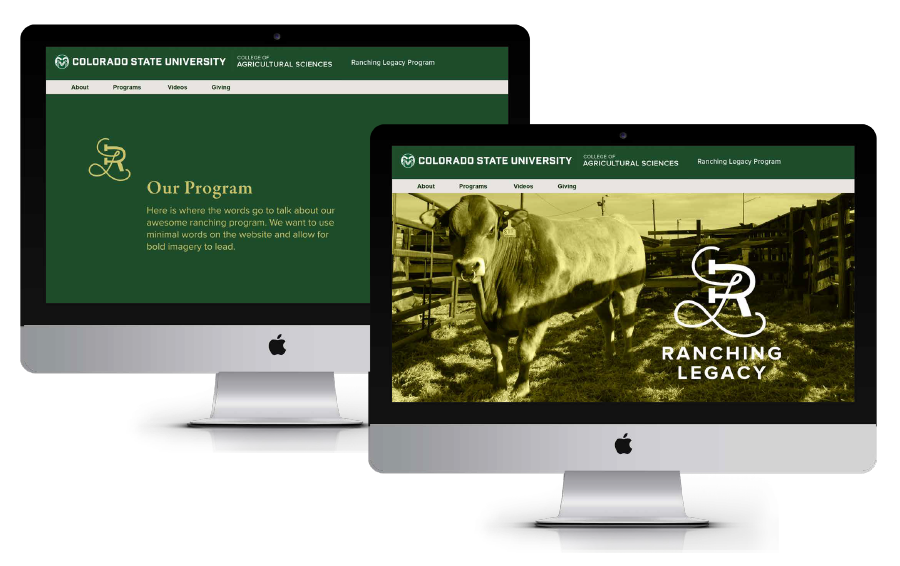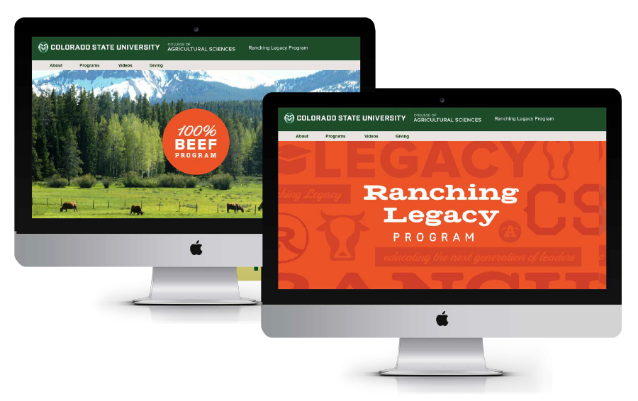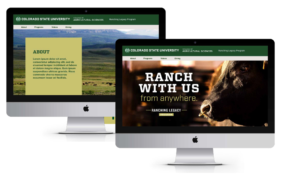 The College of Agricultural Sciences at Colorado State University created a new online program to train the next generation of ranchers. Our challenge was to create a brand for the program that balanced reached both an older traditional audience with a newer up and coming generation of ranchers. Three directions I designed and presented to the client are above. The first, utilizes their College’s icons in a new and fresh way from how they currently have been applying them. The second direction still utilizes the green and gold but pushes the program into a more sophisticated direction. The third direction provides a more straightforward simple type option.